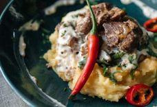 350 г • подается с тушеными в сливках овощами и яйцом пашот