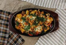 450 г • осетинский пирог закрытого типа с начинкой из картофеля, сыра Адыгейского и сыра Сулугуни, укропа