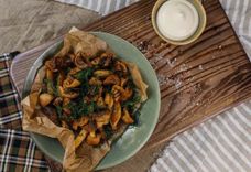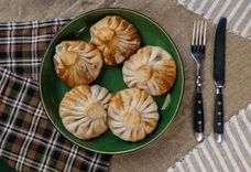 450 г • осетинский пирог закрытого типа в форме круглой лепешки с начинкой из шампиньонов, лука и моркови
