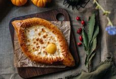 450 г • пирог в форме лодочки с начинкой из Адыгейского сыра и сыра Сулугуни, со сливочным маслом и куриным желтком